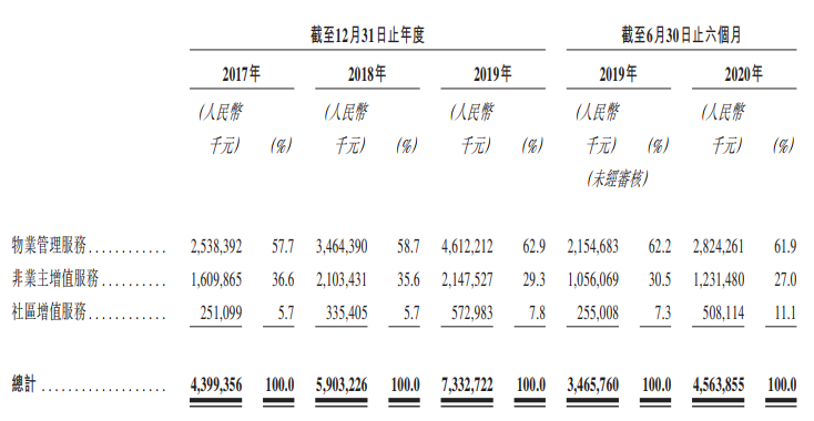 于2017年、 2018年及2019年以及截至2020上半年,恒大物业实现收入分别为人民币43.99亿元、人民币59.03亿元、人民币73.32亿元及人民币45.64亿元;其中2019年营收相较于2017年增长幅度有66.7%。