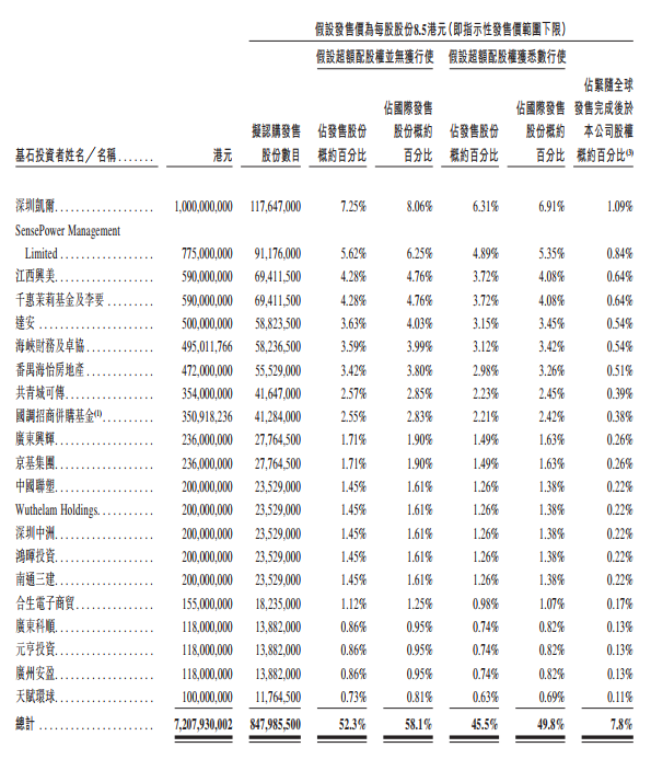 招股书显示,恒大物业本次吸引了东方雨虹、商汤科技、中国燃气、中国国企结构调整基金、京基集团、合生创展等20多家知名企业作为基石投资者,如果按照发售价上限定价,将占比国际发售部分约50.65%,同时还会有上市之日起半年的限售期限。