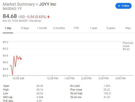 “自11月18日卖空报告发布以来,欢聚时代股价累跌15%,我们建议投资者进一步逢低吸纳。”