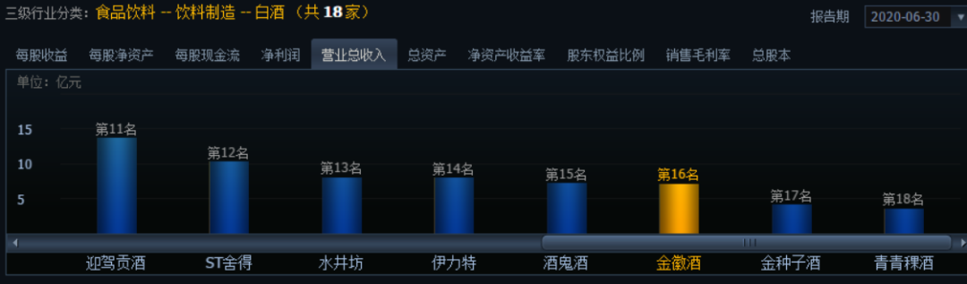 但是,受限于西北地区的白酒市场规模,金徽酒作为区域龙头,行业地位并不高。截至2020年中报,金徽酒上半年营收为7.12亿元,行业排名第16位。