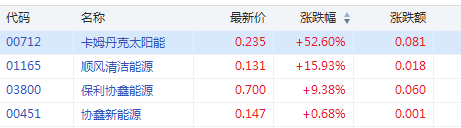 港股光伏板块涨幅扩大,卡姆丹克太阳能涨50%