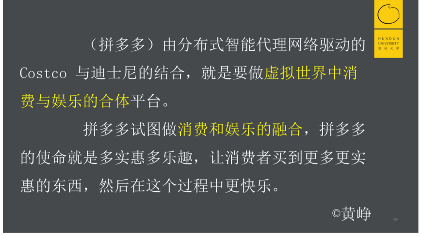 黄峥说,拼多多要做一个Costco和迪士尼的结合,把娱乐场景和消费场景融合在一起。从后期的数据统计来看,拼多多的购物场景确实如此。