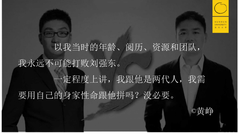 在一次刘强东和黄峥共同出席的活动上,黄峥提到自己的转型想法——以我的年龄、资历和团队,我根本不可能打败刘强东。