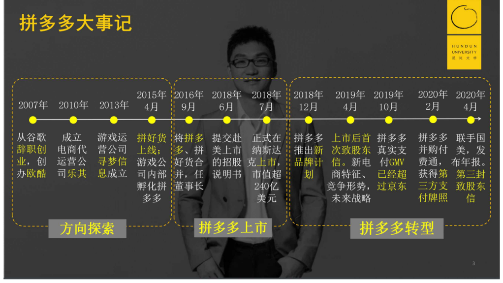 拼多多成立的时间并不长,我们可以分为三个阶段。