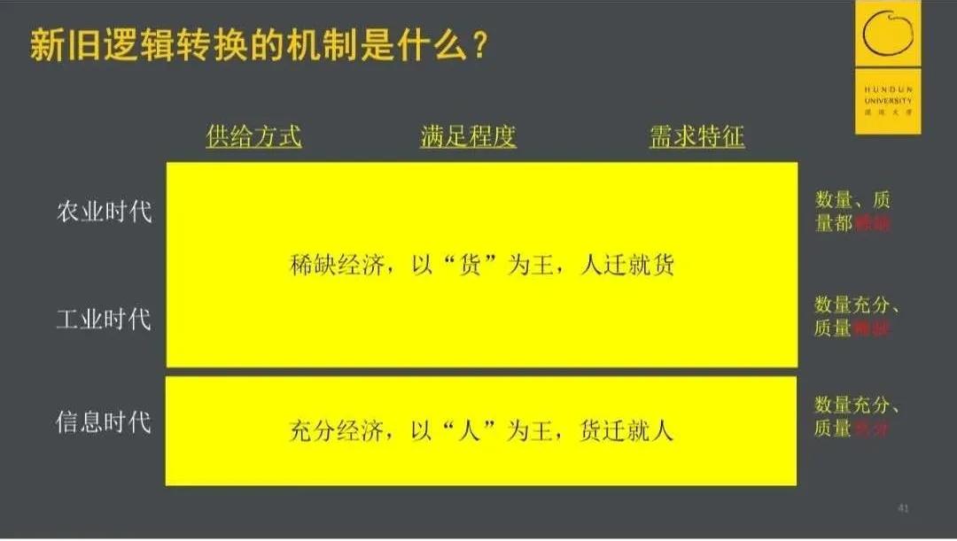 工业革命时期,我们用机器解放了人力,进行了大规模的社会化生产,大量低成本标准化的产品被送到普通民众的手里,比如福特的T型车。只有产品的生产被标准化之后,成本才有可能降下来,才能让每个普通家庭都开上车,这是工业时代的供需逻辑。这个阶段,我们供给的数量是充分的,但供给的质量是稀缺的。