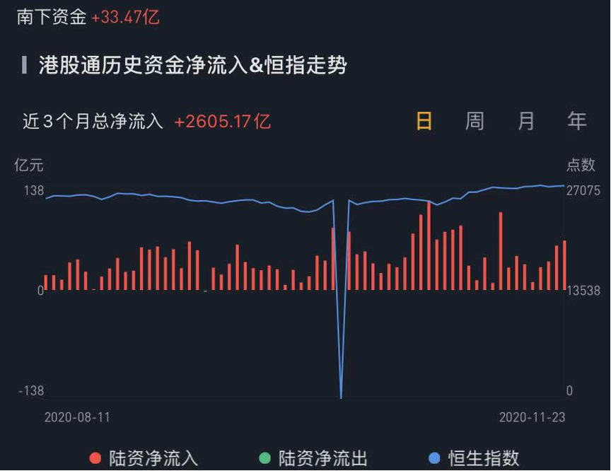 南下资金今日净流入港股33.47亿港元,流入规模较昨日减半。