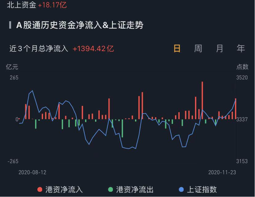 北上资金今日净流入A股18.17亿元,港资加仓A股情绪再见消极,流入规模减超百亿。