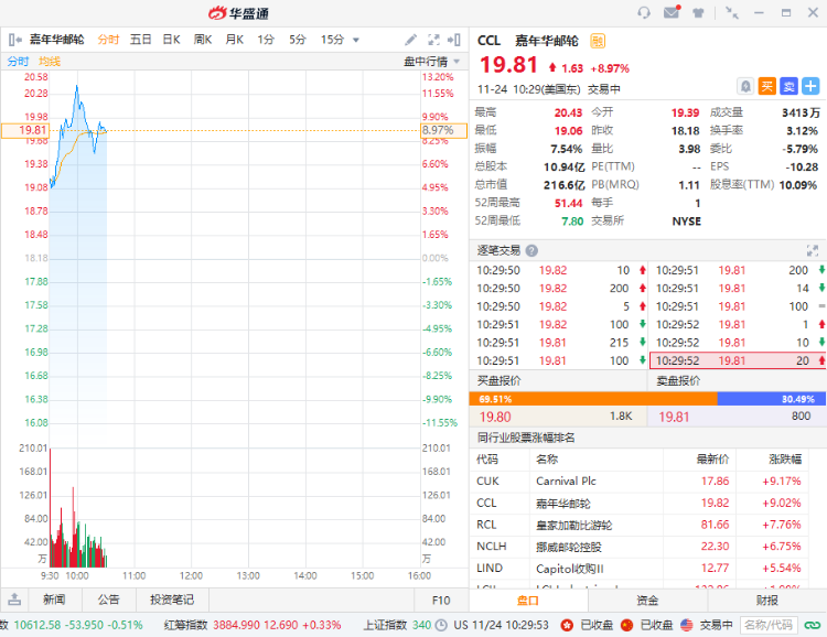 美股异动 | 邮轮股延续涨势,嘉年华邮轮涨8.97%