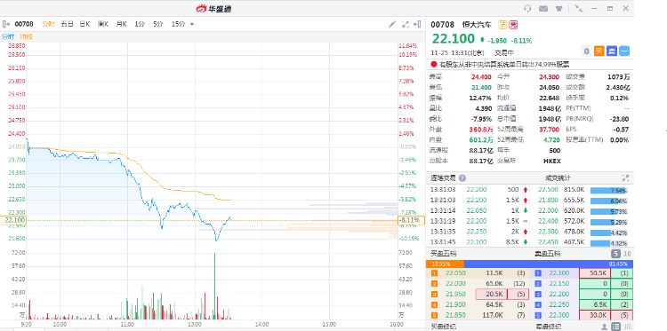据一财,发改委调查各地新能源车投资,摸底恒大和宝能相关项目,恒大汽车在香港跳水,午后跌幅扩大至8.11%,市值1948亿港元。