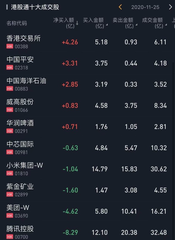 个股方面,今日南下资金净买入香港交易所4.26亿港元,为今日买入之最。此外,南下资金净买入中国平安3.31亿港元,净买入中国海洋石油2.85亿港元。此外,南下资金净卖出腾讯控股8.29亿港元。