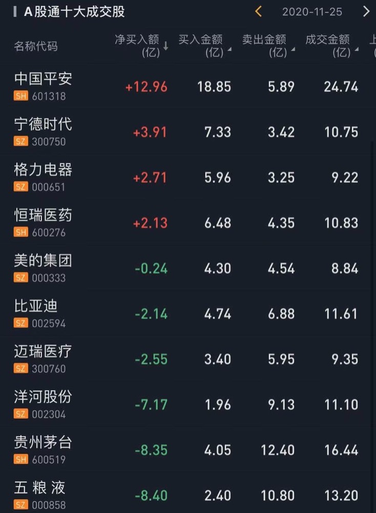 北上资金今日净买入中国平安12.96亿元,净买入宁德时代3.91亿元,净买入格力电器2.71亿元。此外,北上资金净卖出五粮液8.40亿元,为今日抛售之最。