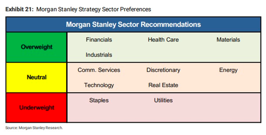 大摩认为,在信用环境良好、实际利率上行之际,金融股会有较大的上涨空间,而材料股、工业股也值得超配。