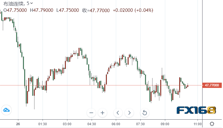 FX168财经报社(北美)讯 周四(11月26日)适逢美国感恩节,市场交易清淡。当日德国总理默克尔发表公开讲话,对当前的疫情状况释放了更多忧虑情绪,并暗示封锁措施可能延续到圣诞新年假日期间,这令此前因疫苗研发进程乐观而带来的市场乐观情绪趋于消退,布伦特原油期货周四(11月26日)结束了此前四日连涨之势。截至发稿,布伦特原油1月期货收跌81美分,跌幅1.66%,报47.80美元/桶。此前交易日,布油收涨75美分,涨幅1.57%,报48.61美元/桶。