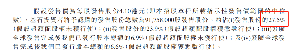基石投资份额占发售总数27.5%(按中间价计)