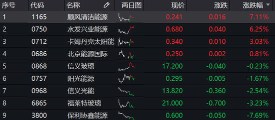 光伏概念股走势分化:顺风清洁能源涨超7% 保利协鑫跌近8%