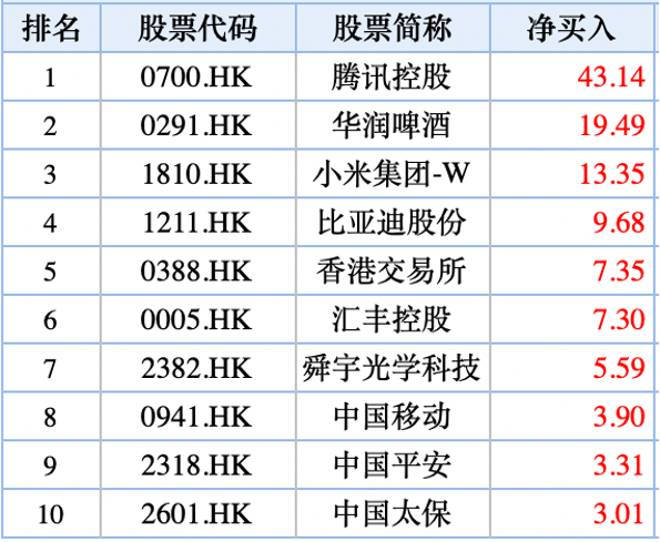 南下资金加仓腾讯、华润啤酒、小米,抛售药明生物、中芯国际;