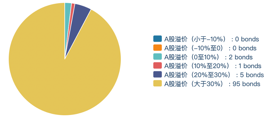 本周共有95只A股溢价超过30%,有6只A股溢价在10%-30%之间。