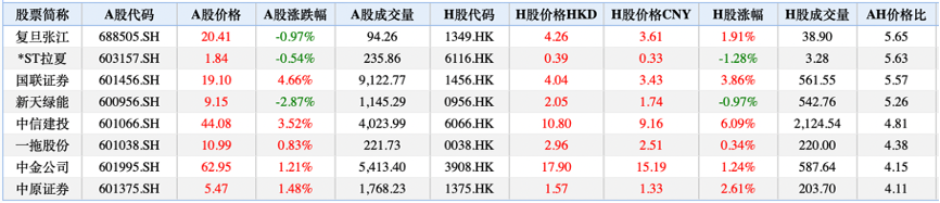 个股方面,复旦张江、ST拉夏贝尔、国联证券、新天绿能、中信建投等个股仍然位列溢价榜首,投资者可关注相关个股估值回归机会。