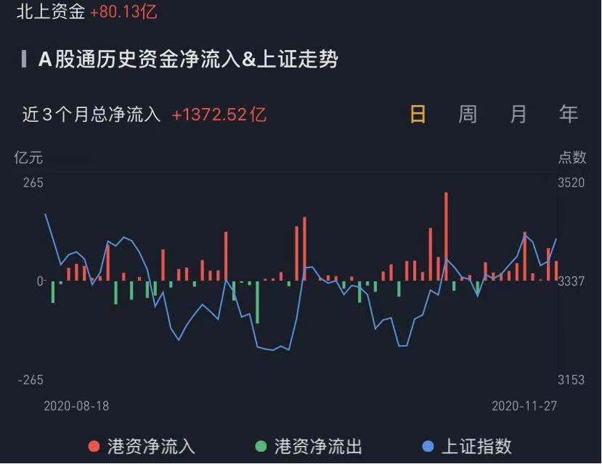 北上资金今日净流入A股80.13亿元,港资加仓A股规模维持高位。