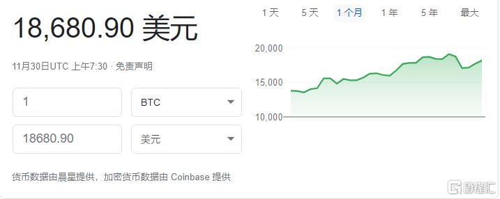 上周,比特币在感恩节到来之前再度飙升,一个月内上涨了50%,上周二达到19345美元的52周新高,仅比2017年12月创下的19783美元的历史最高点低了2%。然而比特币的涨势在感恩节当日出现了戏剧性地逆转,价格从19345美元跌至16242美元。16%的跌幅是今年3月以来最大的一次,之前的迅猛涨势被大大削弱。(编者注:截至11月30日,比特币回升至18680.90美元)