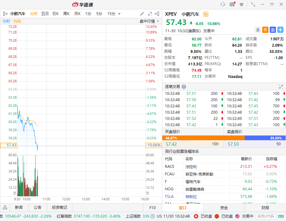 造车新势力大跌,小鹏汽车跌超10%,理想汽车跌9%,蔚来汽车跌5.7%。其他中概股中,拼多多跌超5%,京东跌4.7%,阿里巴巴跌3.7%,华住酒店跌3%。
