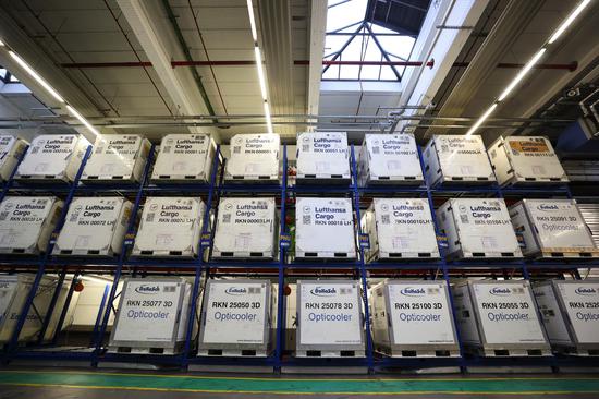 在法兰克福机场周边的冷藏仓库,德国汉莎航空正让缩编后的工作人员做好准备,完成空运疫苗以结束这场全球大流行病的艰巨任务。
