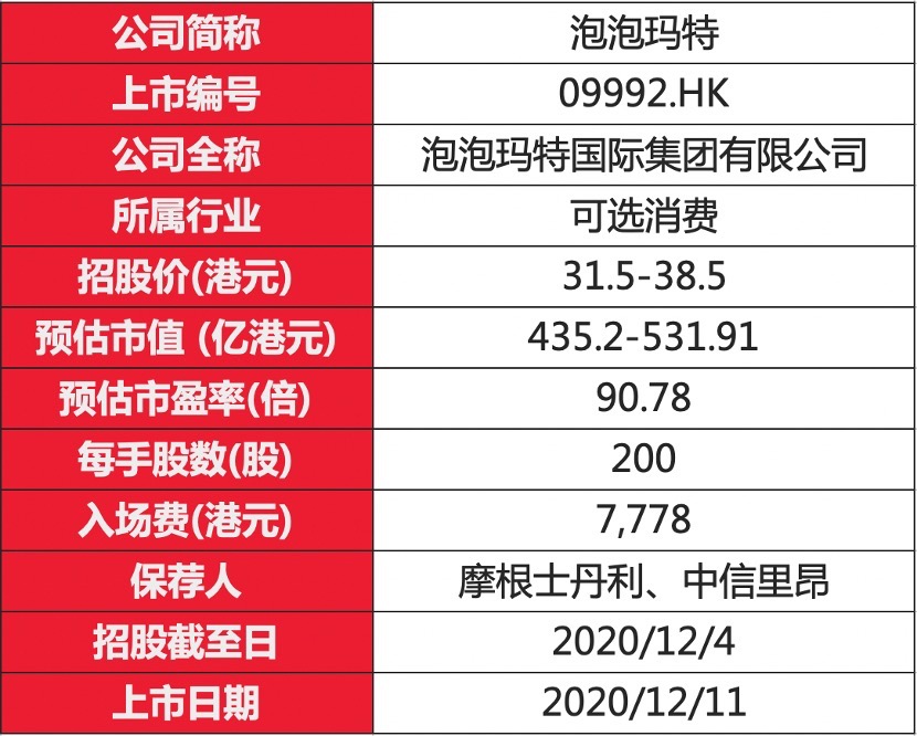 华盛资讯12月1日讯,潮流玩具公司泡泡玛特于2020年12月1-4日开启招股!