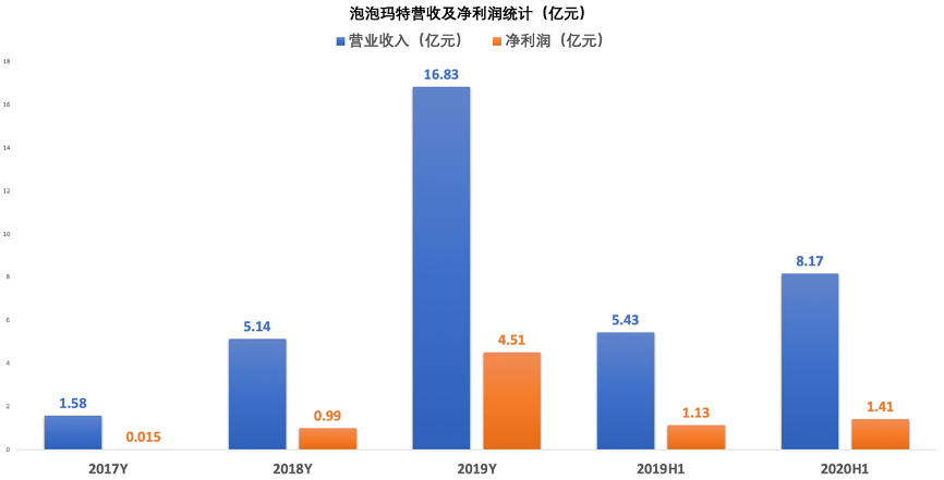 营收爆炸性增长的同时,泡泡玛特的净利润也同步爆炸性增长。2017年时,泡泡玛特净利润仅为156.9万元,但2019年净利润已经达到4.51亿元,2年内净利润翻了300倍,增幅惊人。