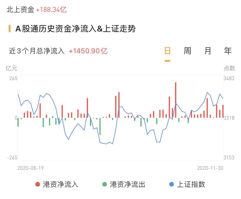 北上资金今日净流入A股188.84亿元,港资持续流入A股。