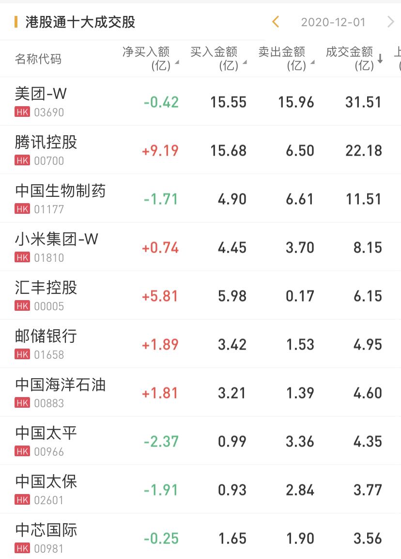 个股方面,今日南下资金净买入腾讯控股9.19亿港元,为今日买入之最。净买入汇丰控股5.81亿港元,净买入邮储银行1.89亿港元。此外,南下资金净卖出中国太平2.37亿港元、中国太保1.91亿港元。