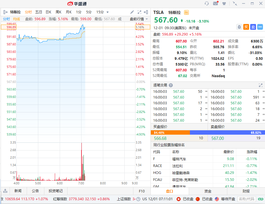 盘前异动 | 特斯拉盘前涨幅扩大至5%,将于12月21日纳入标普
