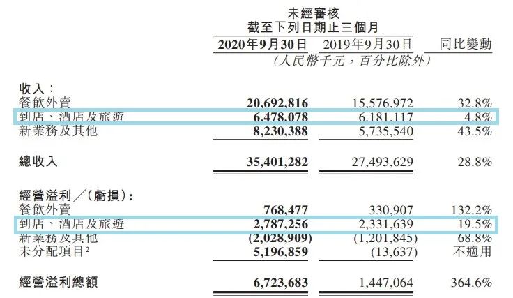 注意细节,美团的到店、酒店及旅游业务经营溢利,由2020年二季度的19亿元增长47.4%,达到2020年三季度的约28亿元,涨幅不错。