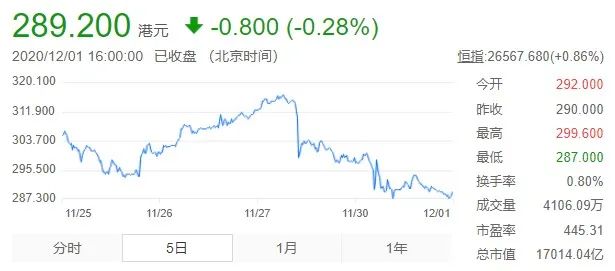 三季报这一表现没有赢得市场的欢心。11月30日、12月1日,连续2日在港股的表现都不如人意,如下图。