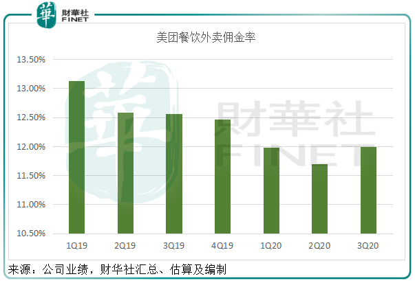 另外,财华社亦发现,第三季餐饮外卖的交易金额同比增加了403.1亿元,佣金收入增加了42亿元,但同时餐饮外卖骑手的成本也增加了40亿元。从中可见,餐饮外卖受制于竞争,变现率和佣金率均有所下降,而外卖骑手成本的管理或提升了其盈利能力。2020年第三季,餐饮外卖经营利润率按年提升了5.31个百分点,至43.03%。