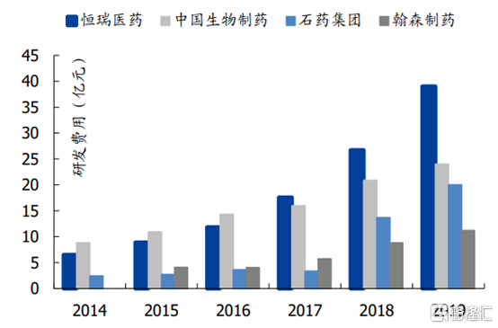 今年前三季度,中生制药研发投入21.9亿港元,与去年同期基本持平,占总营收的比例为10.6%。去年中生研发投入26.8亿港元,同比提升12.1%。在整个行业来看,中生研发投入费用总额仅次于恒瑞医药,研发费用率也处于较高水平。