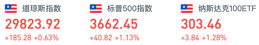 美股周二收高,纳指与标普500指数创历史最高收盘纪录。投资者预期新冠疫苗将刺激经济复苏,而美联储、欧洲央行等进一步宽松的前景升温。耶伦称需采取紧急行动来防止美国经济衰退。道指收盘上涨185.28点,或0.63%,报29823.92点;纳指涨156.37点,或1.28%,报12355.11点;标普500指数涨40.82点,或1.13%,报3662.45点。