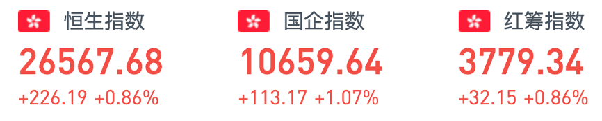12月1日,港股恒生指数经历昨天大泻逾500点后,今天显着反弹,最终升226点,收复了昨天4成失地;而成交金额亦回复正常水平,为1537.1亿港元。恒生指数升226.19点或0.86%,收报26567.68点。恒生国企指数升113.17点或1.07%,收报10659.64点。恒生科技指数跌34点或0.42%,收报7985.36点。成交金额回落至1537.1亿港元。