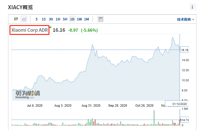 受到小米配售股份等消息的影响,小米在12月1日的美股ADR已经率先出现下跌,截至收市下跌幅度达5.66%。