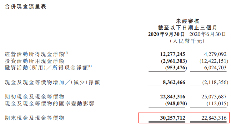 而对于小米集团而言,从它最新的2020年第三季度财报数据来看,账上的期末现金和现金等价物高达302.57亿元人民币,乍看上去现金流情况非常健康。