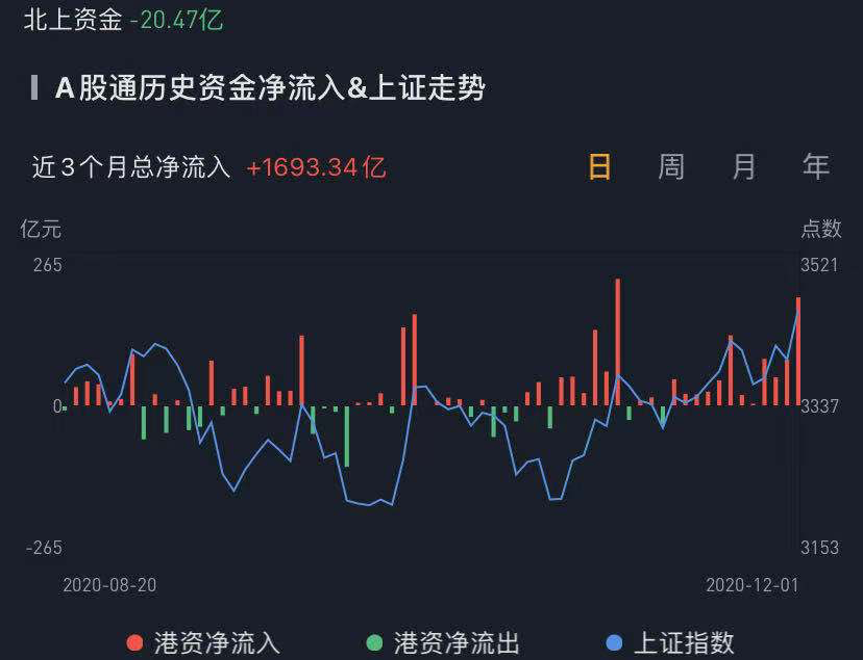 北上资金今日净流出A股20.47亿元,转净流入为净流出。