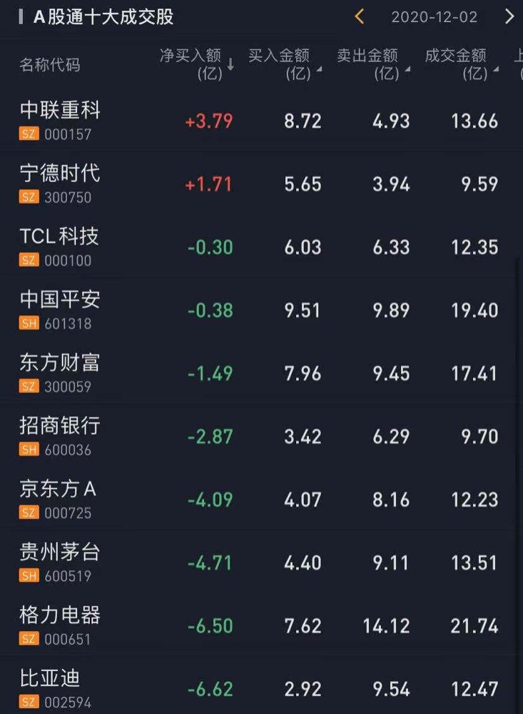 北上资金今日净买入中联重科3.79亿元,为今日买入之最。此外,南下资金净买入宁德时代1.71亿元。