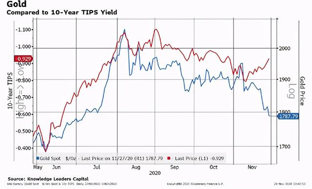 TIPS收益率已经跌了整整一个月,从-79个基点跌到-93个基点,而黄金还没有从中借力上涨。