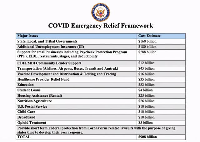 同时,最新提案的金额也大幅低于民主党高层佩洛西(Nancy Pelosi)提出的2.2万亿美元方案,美国当选总统拜登则支持佩洛西的立场。