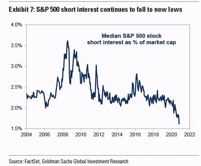 ①空头现在几乎已经绝迹,做空兴趣处于15年来的最低水平。