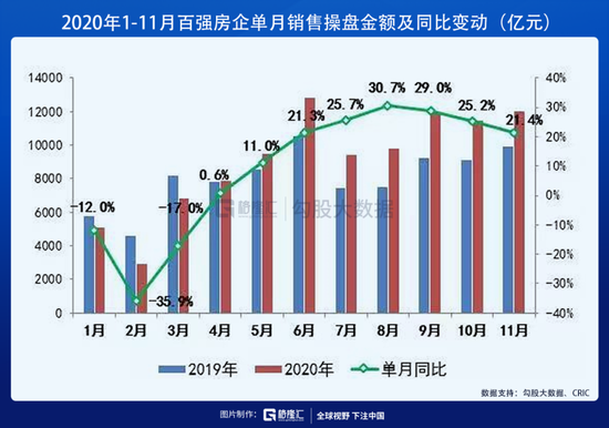 房企每个月销售数据出炉的时候,地产股总会表现一下,特别是到了年底。前几天,克而瑞发布了地产公司11月份销售业绩,TOP100房企销售金额12025.8亿元,同比增长21.4%;1-11月份累计销售金额99492.4亿元,同比增长12.2%。