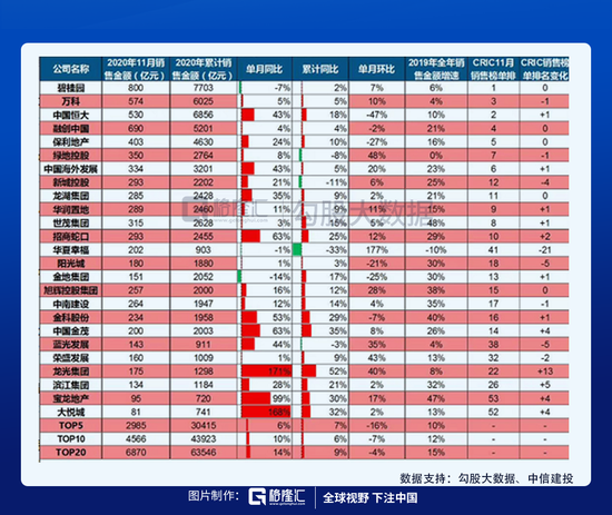 从11月单月销售额来看,销售同比增速较快的房企有中国恒大43%,保利地产24%,招商蛇口63%,金科股份53%,中国金茂63%。而且这些公司累计销售增速和单月销售增速都是两位数增长,排名靠前。