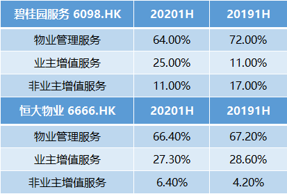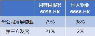 碧桂园服务和恒大物业收入分布