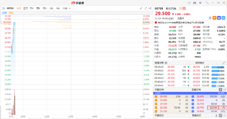 12月3日消息,恒大汽车股价拉升涨8.06%,此前获中国恒大6.6亿港元增持。