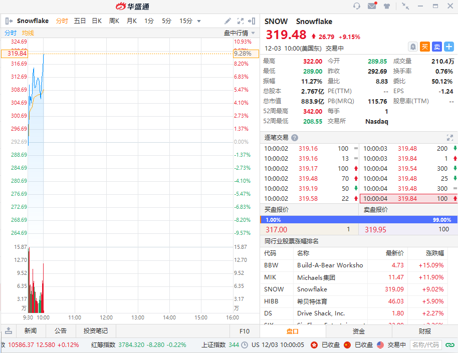 snowflake今日公布Q3财报,盘前交易中一度跌逾4%,盘中小幅低开后直线拉升,截至发稿,涨9.15%。