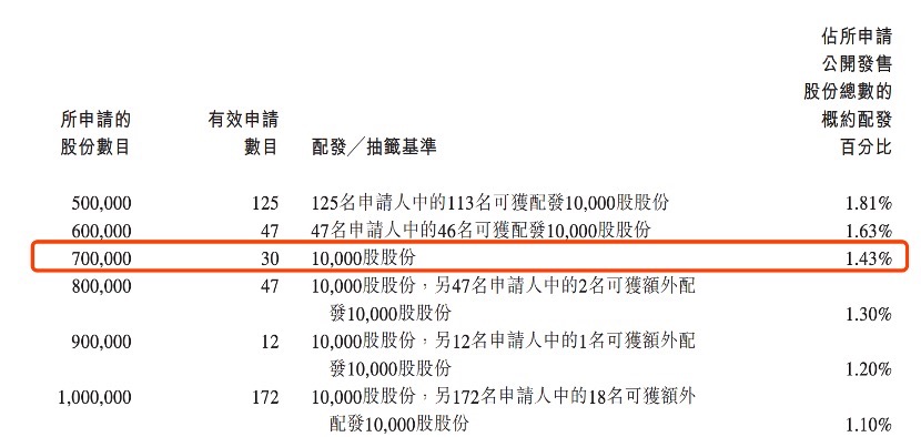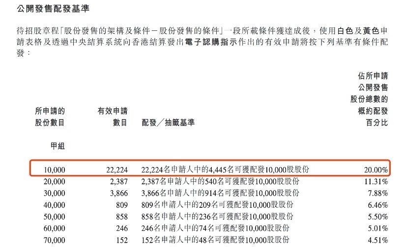 公开发售初步提呈发售的公开发售股份获非常大幅超额认购。已接获合共33,575份有效申请,合共认购约20.45亿股,相当于根据公开发售初步可供认购公开发售股份总数约36.79倍。配售项下初步提呈发售的配售股份获超额认购,约占配售项下初步可供认购配售股份总数约1.08倍。